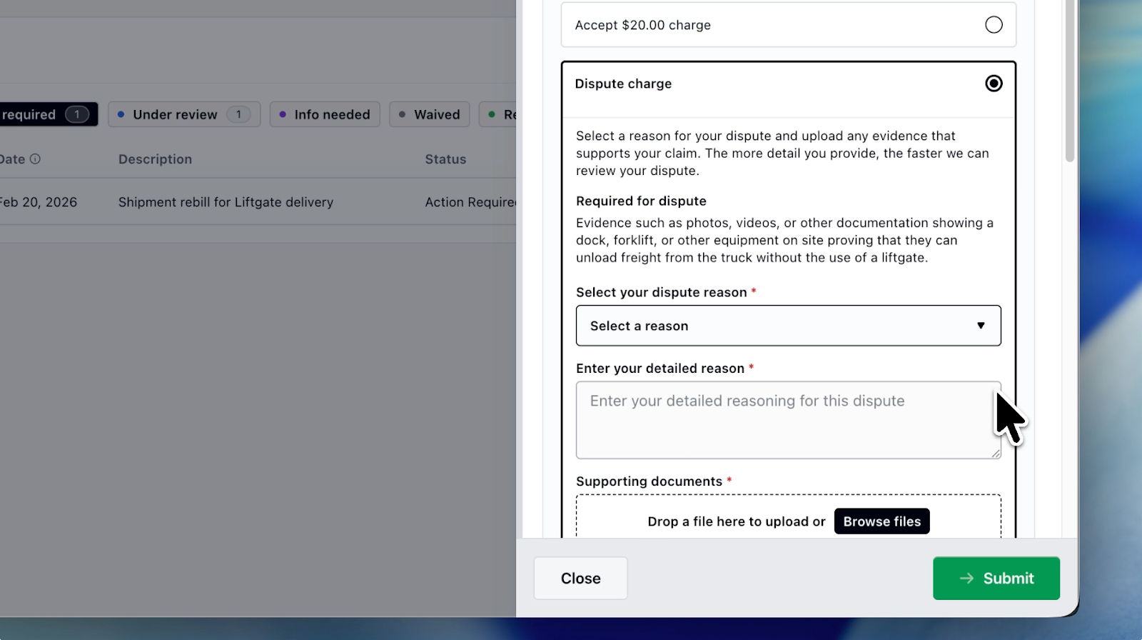 Freight billing has historically been fragmented, reactive, and difficult to navigate — especially when it comes to post-shipment adjustment charges (accessorials, reclassifications, detention, and more). Explanations can be unclear, dispute status difficult to track, and resolution slowed by manual workflows.