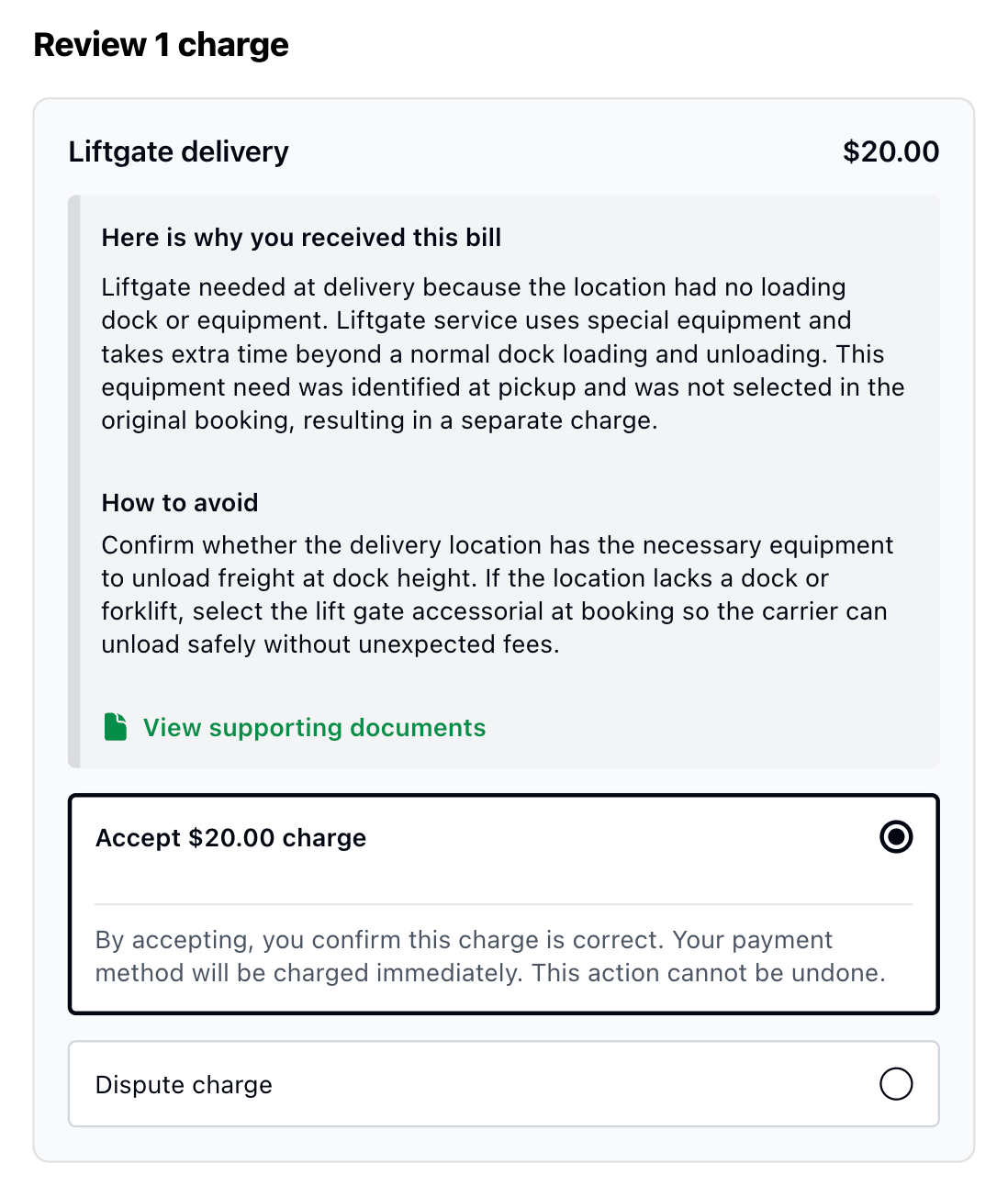 - Clear shipment-level charge explanations