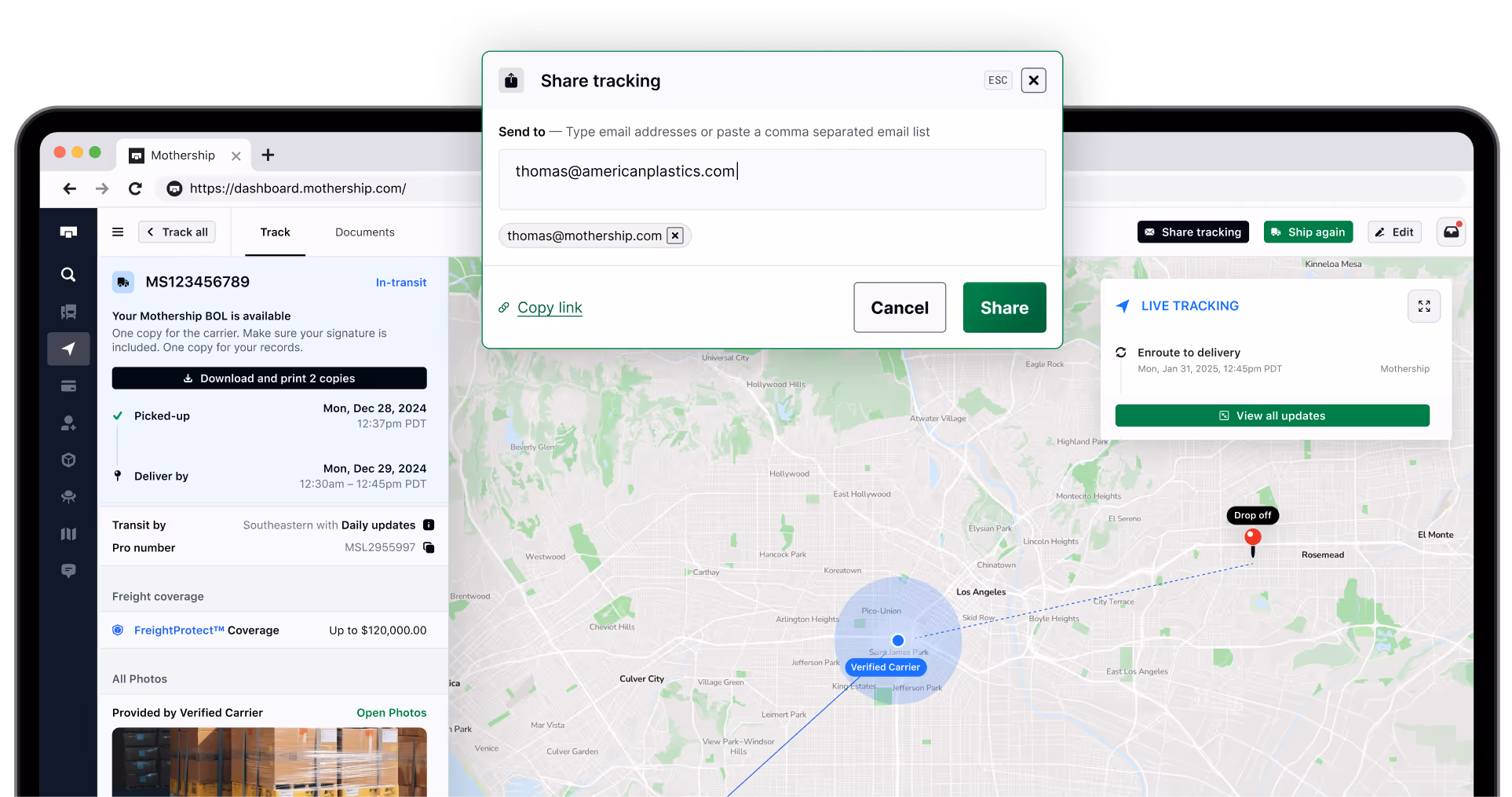 Powered by the Mothership network with real-time tracking from pickup to delivery across the U.S.